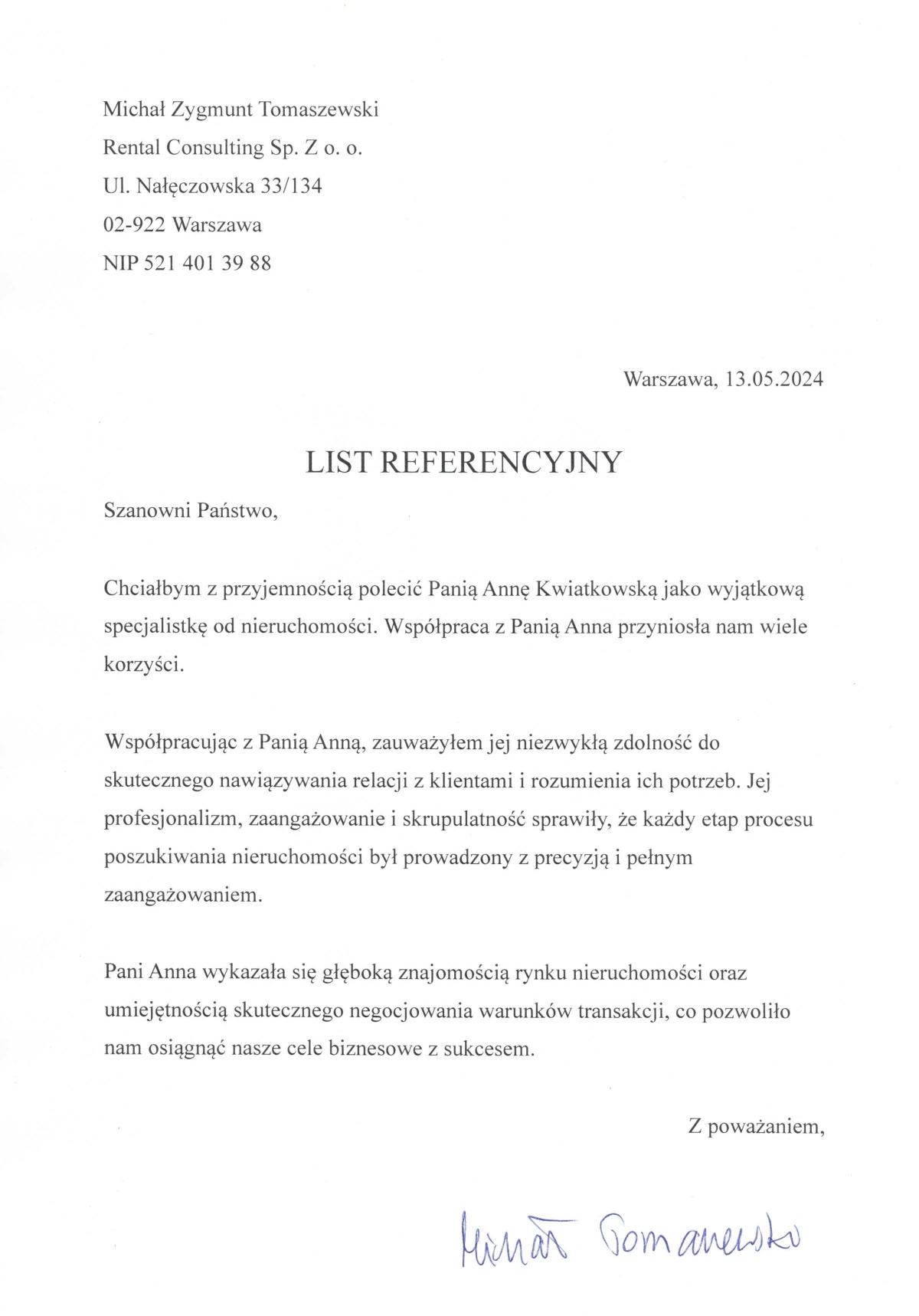 Wierzę że nieruchomość to nie tylko budynek, ale przede wszystkimmiejsce, w którym rodzą się marzenia i tworzą wspomnienia. Dlatego każde zlecenie traktuję z ogromnym szacunkiem i starannością.